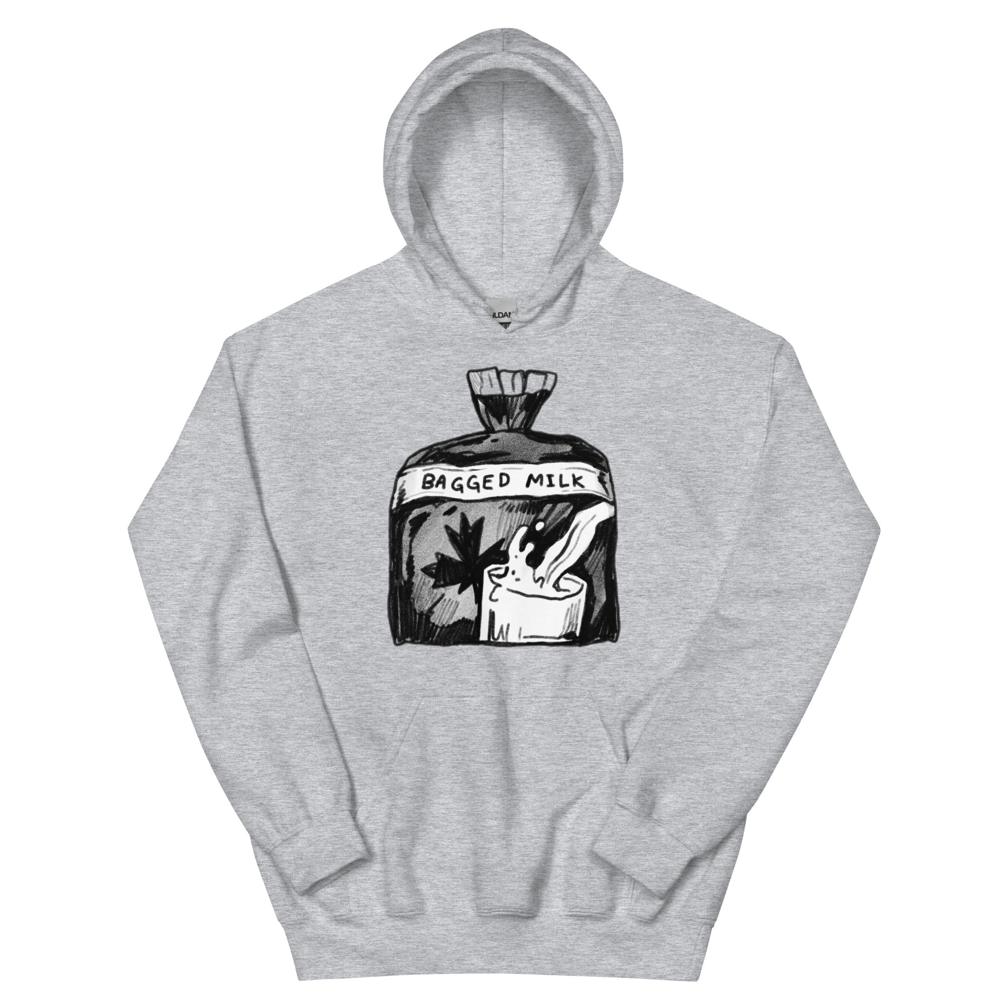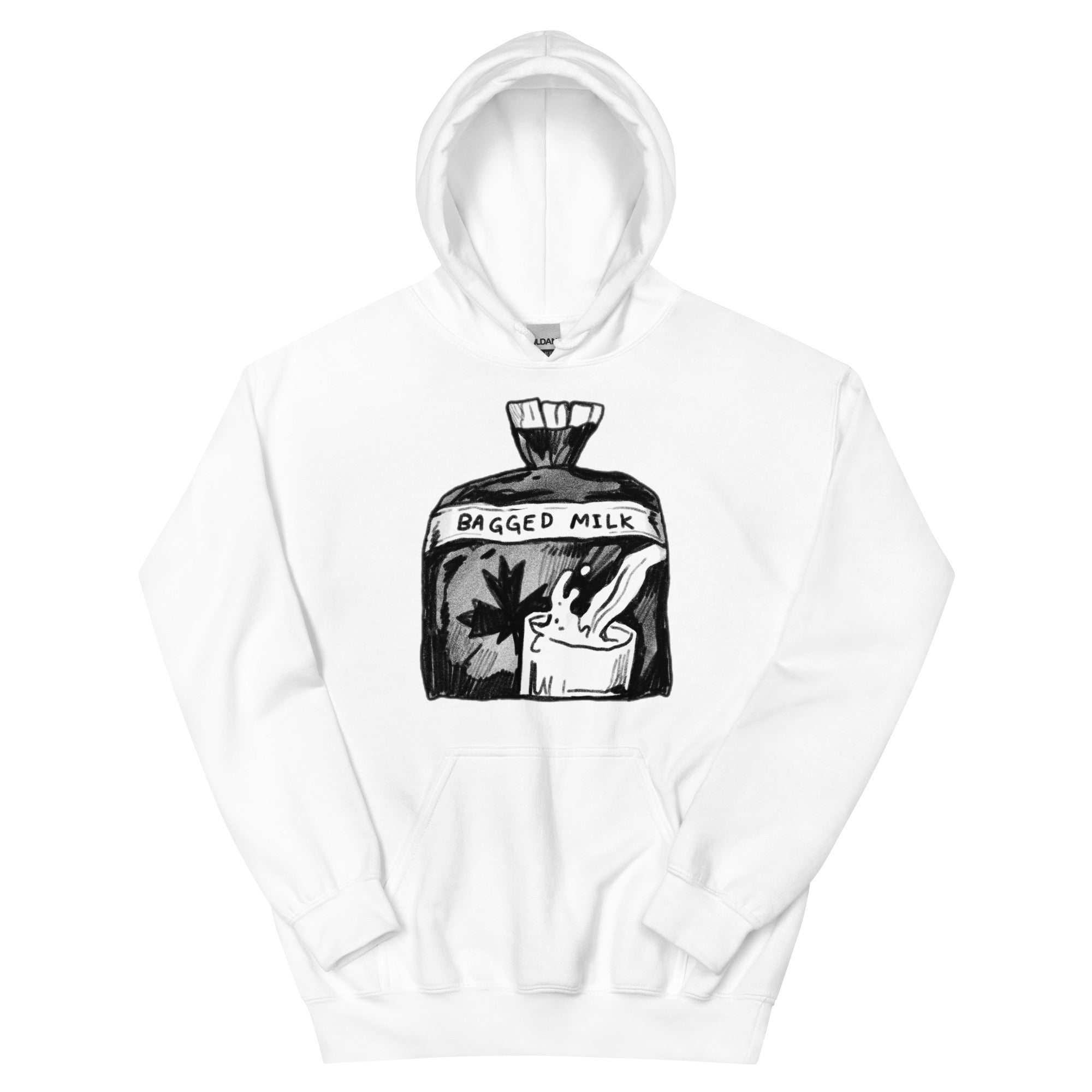 The OG Bagged Milk Canadian Hoodie. Designed by Monique Parlevliet @BaldPeaches. Size up for a baggy fit.